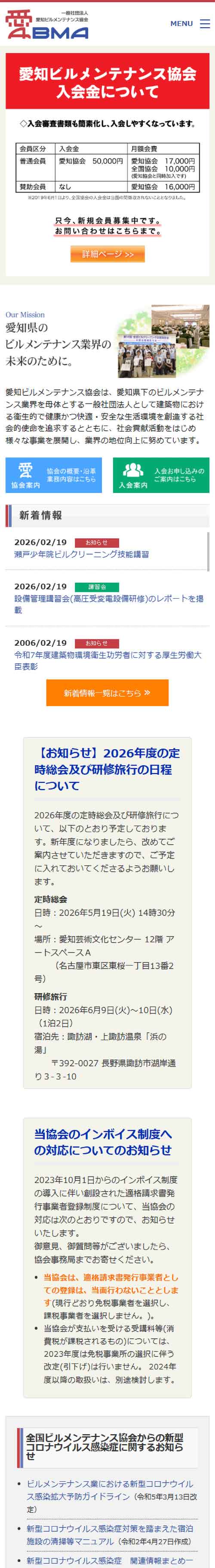 愛知県内にて、ビルメンテナンス・建物の維持管理を行う企業にて構成される協会のWEBサイト制作。普通会員・賛助会員の会員がWEBサイトを閲覧する機会が多いため、情報の整理はもちろん、これまでの活動報告を「わかりやすく・記録に残す」ということに重きを置きます。毎月の更新も数多くある為、日々の更新サポ―トも行っております。