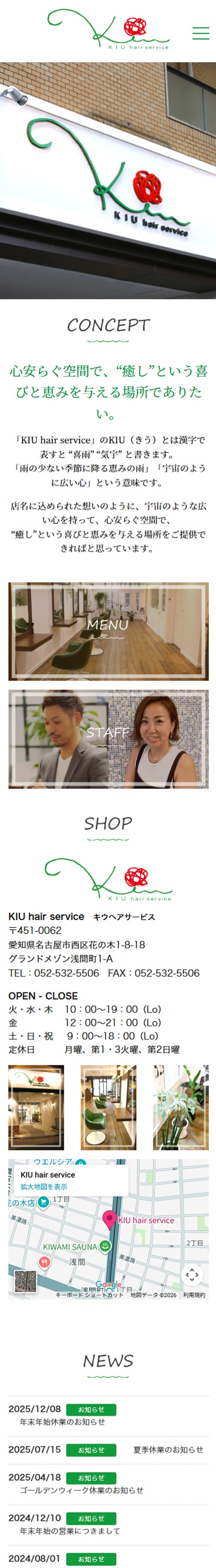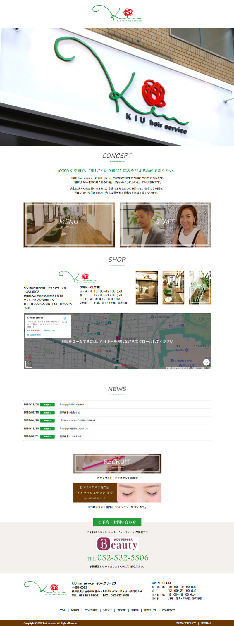 ホームぺージは、「店舗のイメージが伝わり、シンプルに最低限の情報をわかりやすく掲載したい!」とのオーナーからの意向を元に、デザイン・各画面制作を行いました。 リニューアル前は、スマホ・タブレット端末等の閲覧に対応していない、パソコン版のみのサイトでしたが、最新のコーディングスタイルにて“レスポンシブ化”を行い、アクセスの多いスマホ閲覧にも対応済となりました。