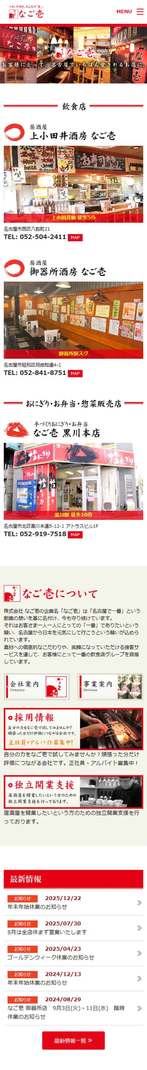 名古屋市の各エリアで居酒屋・お弁当販売店舗を展開する飲食店サイト。店舗情報を表示し「初めて来店するお客様への安心感」を与える情報提供はもちろんのこと、会社(法人)運営も行っているため、仕入れ先、主要銀行、採用活動などのページがあるメリットを理解いただき、長きにわたりサイト運営をサポートしております。