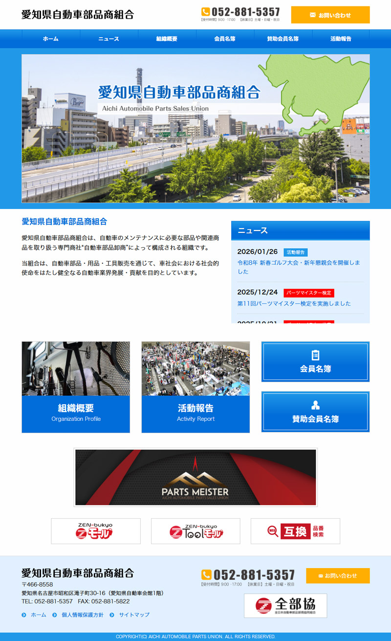 自動車部品商組合という、自動車部品販売業と各部品メーカーにて運営されている組合組織。この組織の運営状況や取り組みなどの情報発信メディアとして、ホームページを制作しました。広く皆さんに知っていただくためのオープンな情報もありながら、ログインID・パスワードを用いた組合員限定にて情報発信をする、非公開画面等をうまく活用しながら、サイト運営をサポ―トしております。